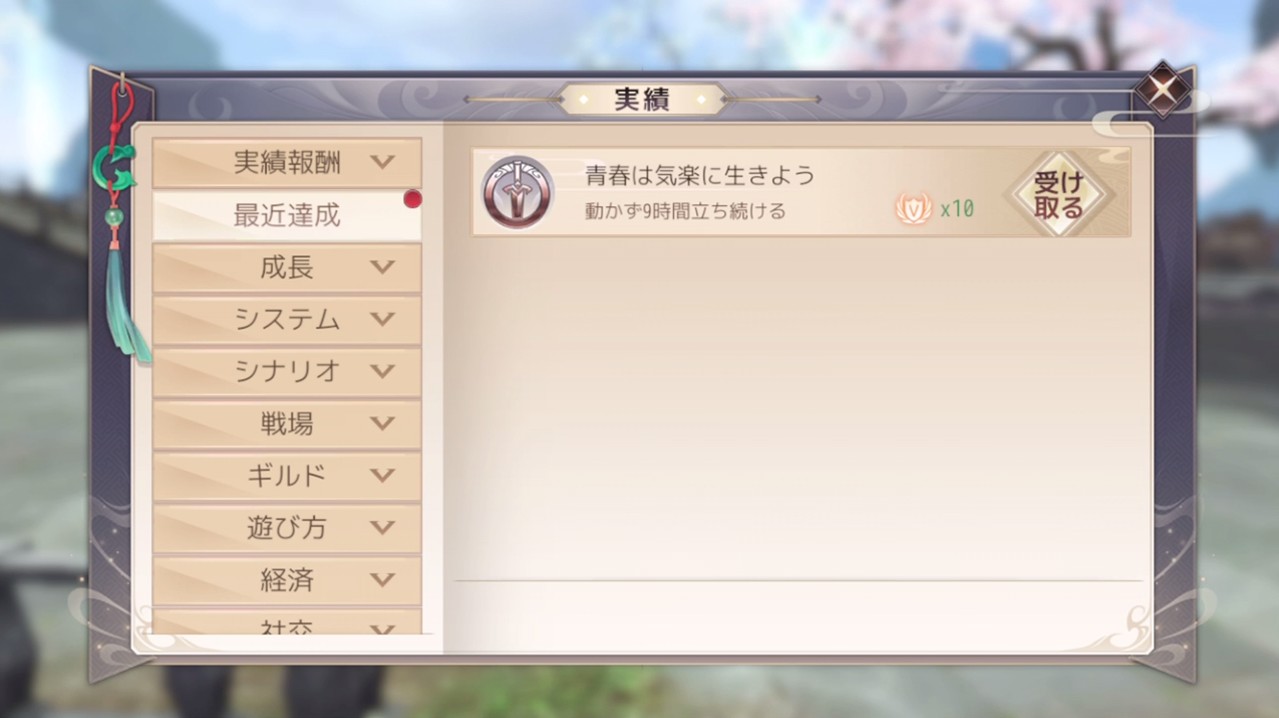 ・体調悪く、あと忙しく9時間立ちっぱなしで放置してたら、称号獲得!(12時間、15時間の称号は有りません)